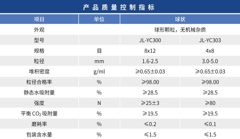 YC300/303型分子篩,主要應用在深冷空分制氧裝置上,產品有強度高,不易粉化,吸附速率快,使用壽命長等等優(yōu)點。 主要應用: YC300/YC303型分子篩,主要應用在深冷空分制氧裝置上,去除原料氣中的水、二氧化碳、硫化物、及一部分不飽和烴類;實施氮氧分離,制取工業(yè)、醫(yī)用氧氣;產品有強度高,不易粉化,吸附速率快,使用壽命長等等優(yōu)點。